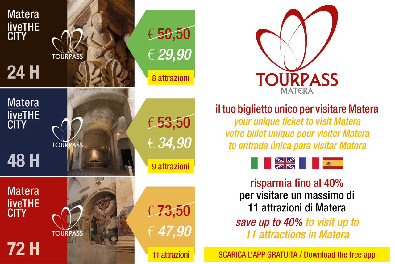 La passeggiata comprende la visita del Centro Storico (piano), i rioni Sassi Barisano e Caveoso, le chiese rupestri e la casa grotta. piccola degustazione prima di cena. Durata 2 ore ca.